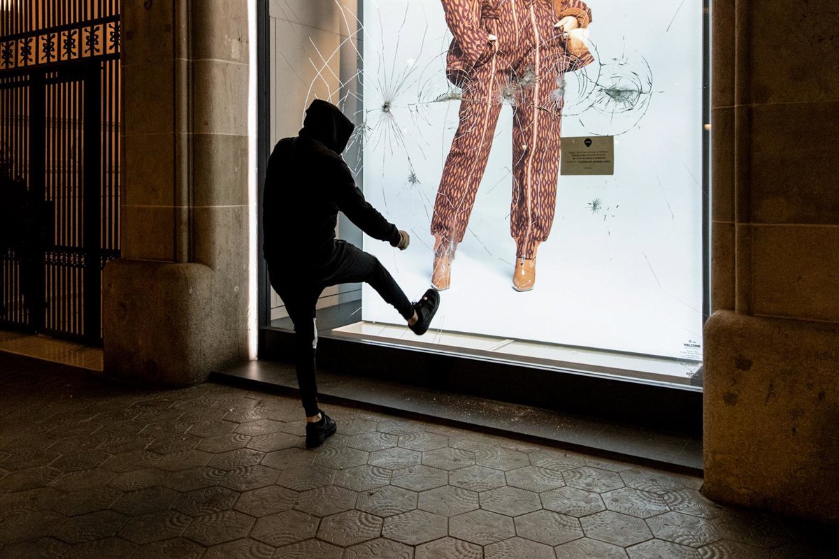 Archivo - Un joven da una patada contra el escaparate de una tienda durante una manifestación. - Lorena Sopêna i Lòpez - Europa Press - Archivo