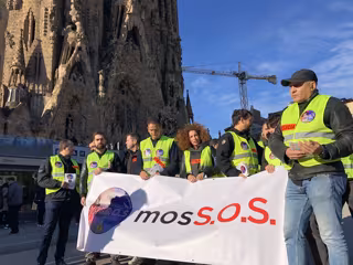 Agentes de los Mossos d'Esquadra convocados por la plataforma MosS.O.S y los sindicatos del cuerpo han repartido la mañana de este miércoles folletos a los turistas que visitan la Sagrada Familia de Barcelona para alertar de que no disponen de los efectivos suficientes para garantizar la seguridad, y cifran en 2.000 el número de policías necesarios.