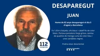 Los Mossos d'Esquadra han encontrado al hombre de 83 años llamado Juan perdido desde el sábado en Barcelona, han informado en un tuit de este martes recogido por Europa Press.