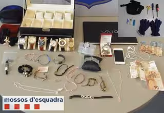 Los agentes encontraron al pie de la valla una bolsa que contendía nueve relojes de alta gama, joyas, un ordenador portátil y un teléfono, valorado todo en 60.000 euros, han informado este viernes los Mossos en un comunicado.