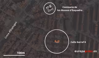 La casa donde vivía el atacante se encuentra acordonada por agentes de la Guardia Urbana y está en la calle Garraf 6 del municipio, a tres calles de la comisaría de los Mossos d'Esquadra, donde se ha procedido a retirar el cadáver a las 10.12 horas.