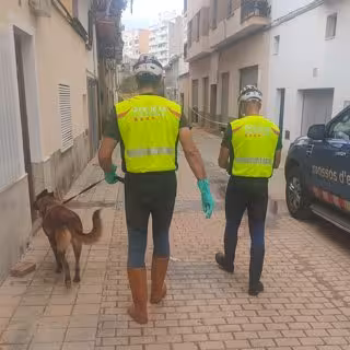 Los Mossos d'Esquadra enviaron este miércoles por la noche a la Comunidad Valenciana dos vehículos con tres perros especializados en la búsqueda de personas desaparecidas para participar en el dispositivo establecido en la zona tras los efectos de la DANA.