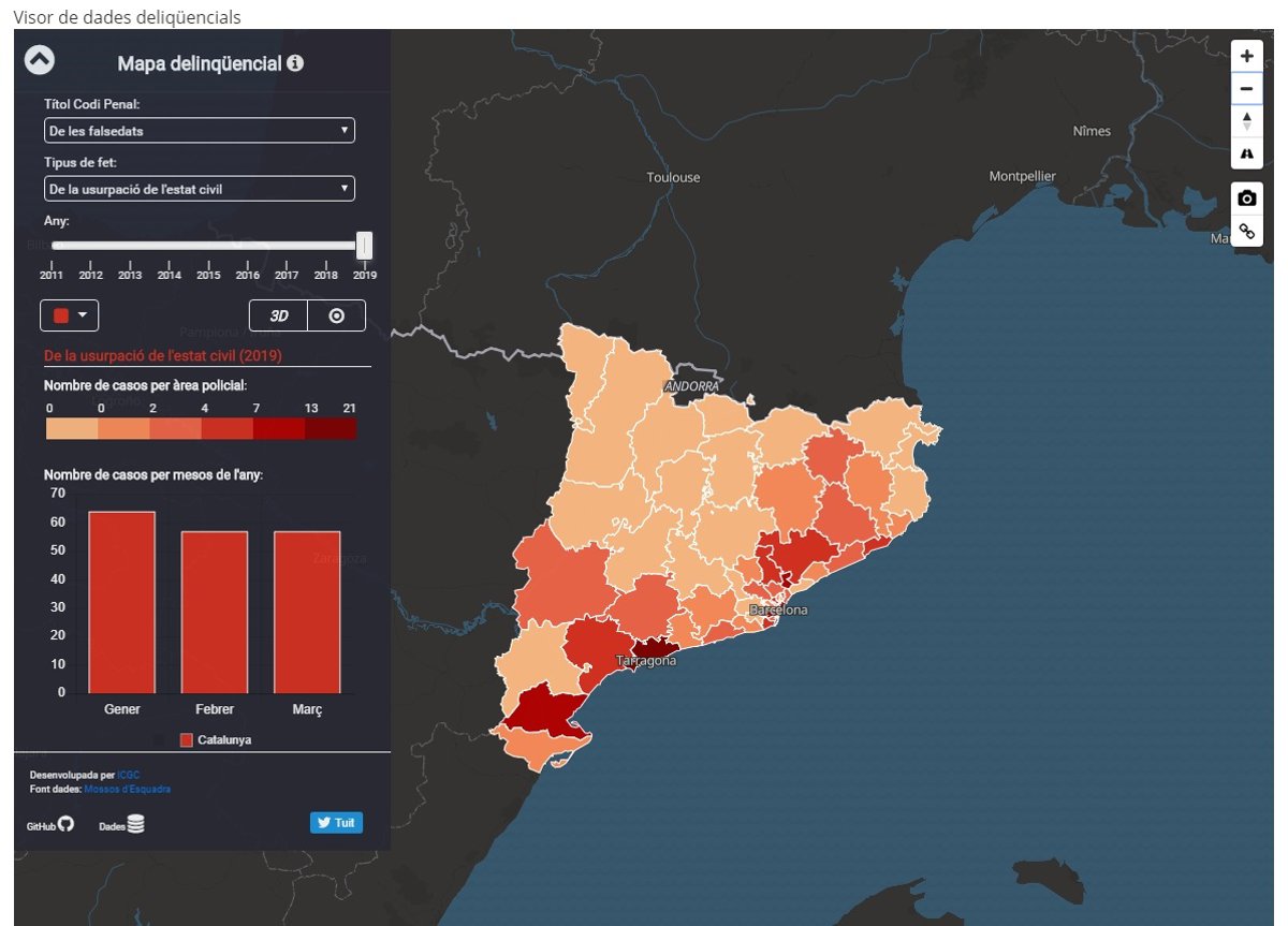 El responsable de la ejecución de la herramienta del Institut Cartogrfic, Sergi Anguita, ha explicado que el visor proporciona información que ya estaba disponible en la web de Mossos a través de datos abiertos pero que ahora esta información se puede "interpretar de forma visual y rápida".