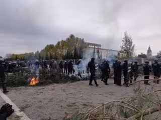 Una decena de furgonetas de la Brimo de los Mossos d'Esquadra han llegado a la manifestación de Tsunami Democrtic en la AP-7, a lo que los manifestantes han respondido encendiendo una barricada en la zona norte del corte.