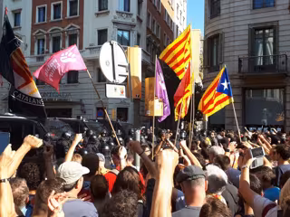 Poco antes de las 11 ha habido una pequeña carga policial para contener la movilización independentista, que ocupa la acera de la Via Laietana más próxima a la plaza Sant Jaume, que es donde han pasado la noche muchos independentistas.