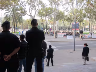 Los agentes de la Policía catalana se han desplegado tanto a las puertas del Palau de Justícia como en el interior, ya que miembros de uno y otro bando tenían previsto asistir a la vista oral, que finalmente se ha suspendido porque el abogado de uno de los acusados no acudió al juicio alegando no tener constancia de su celebración; se ha aplazado al 24 de octubre.
