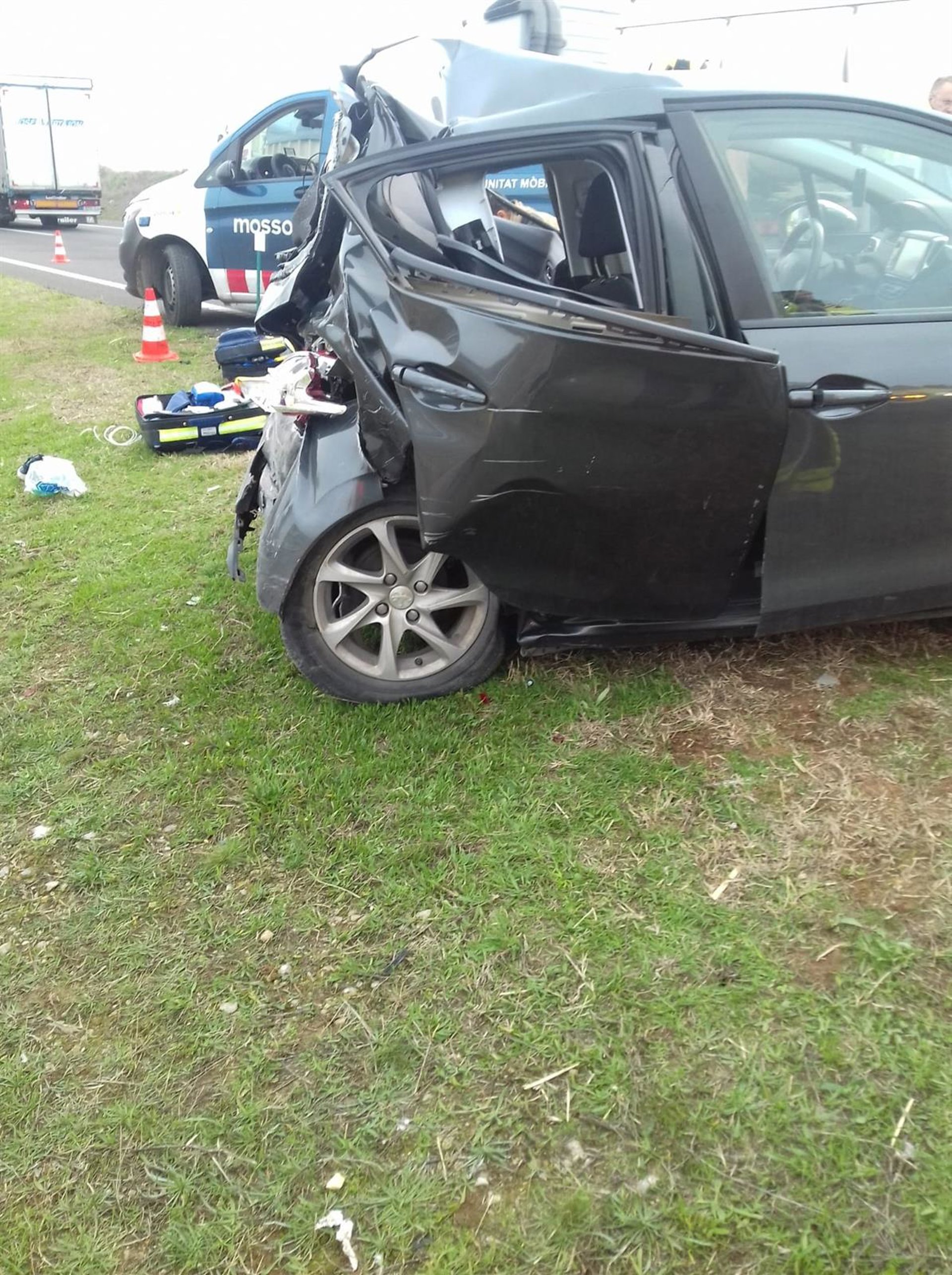 Hasta el lugar del accidente se han desplazado cinco patrullas de los Mossos d'Esquadra, cuatro dotaciones de los Bombers de la Generalitat y una ambulancia del Sistema d'Emergncies Mdiques (SEM).