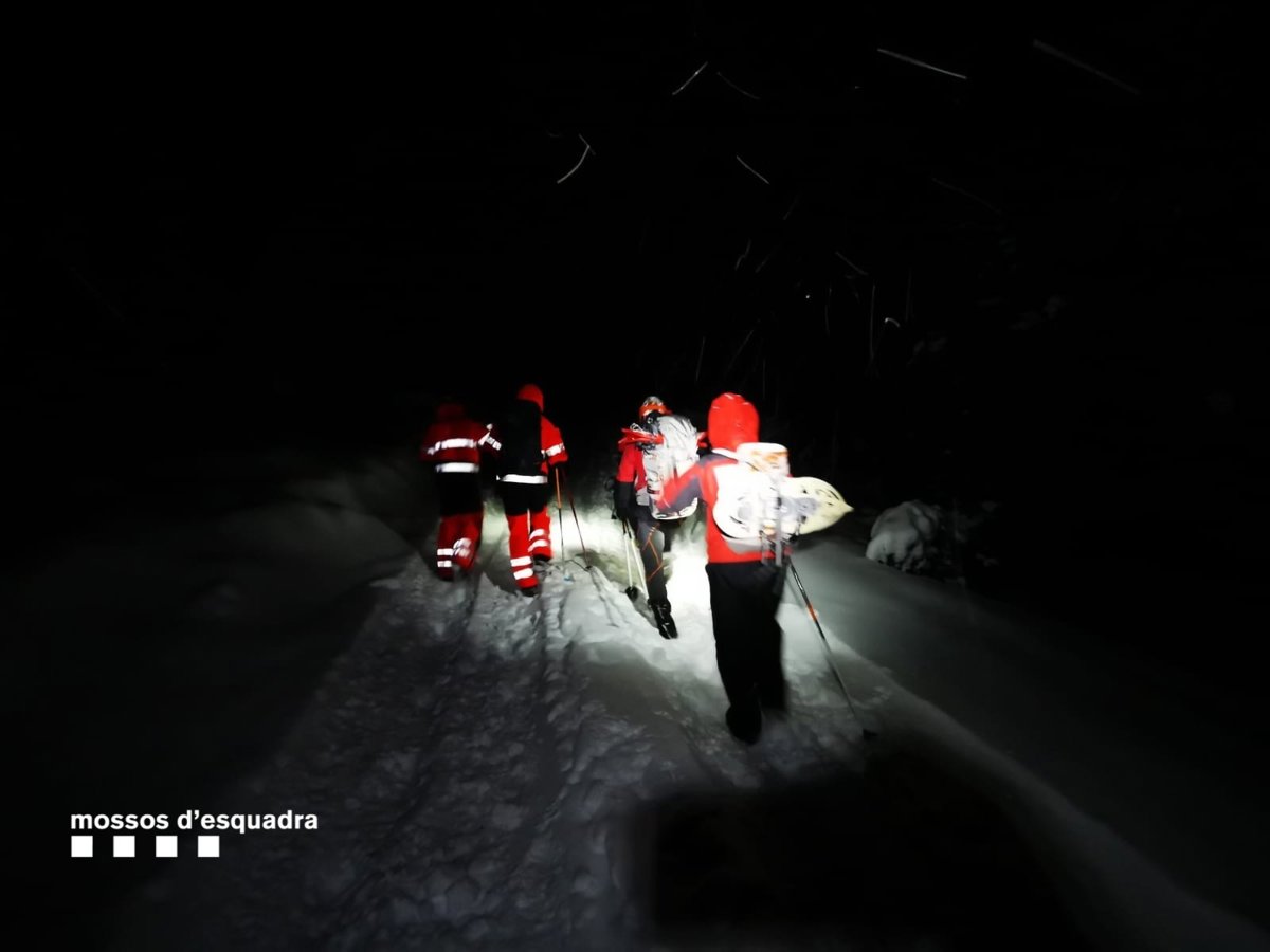 Los Bombers de la Generalitat lo han localizado vivo y "enterrado bajo nieve" con síntomas de hipotermia sobre las 15.26 horas, tras excavar la nieve de una avalancha ocurrida el domingo en la zona de la Font d'en Xavier.