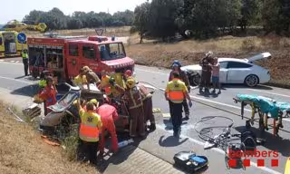 Se han trasladado hasta el punto del siniestro cuatro patrullas de los Mossos d'Esquadra, seis dotaciones de Bombers de la Generalitat y dos ambulancias y un helicóptero del Servei d'Emergències Mèdiques (SEM), que han cortado la vía las 13.14 horas.