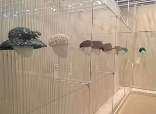 Muestra un total de 87 sombreros, de los que 43 pertenecen a la colección del Museu del Disseny y los 44 restantes a la colección del Museo Cristóbal Balenciaga.