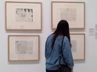 La muestra sigue el orden cronológico, y contiene estampas, pruebas de impresor y pruebas de artista --que sorprenden al espectador con una especie de "work in progress" porque a veces sólo se modifican detalles y en otras ocasiones cambia el dibujo--.