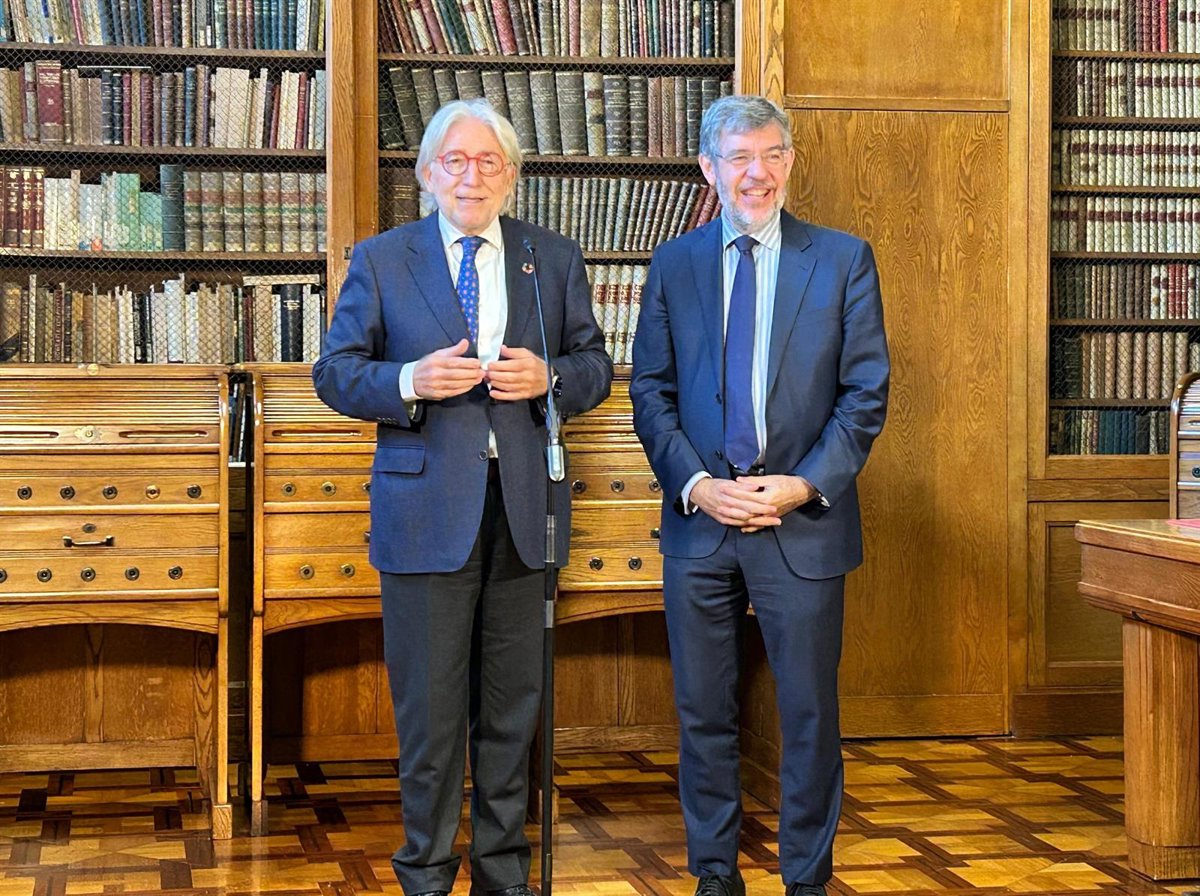 El presidente de Foment, Josep Sànchez Llibre, y el vicesecretario de Economía y Desarrollo sostenible del PP, Alberto Nadal, en la sede de Foment del Treball en Barcelona - EUROPA PRESS