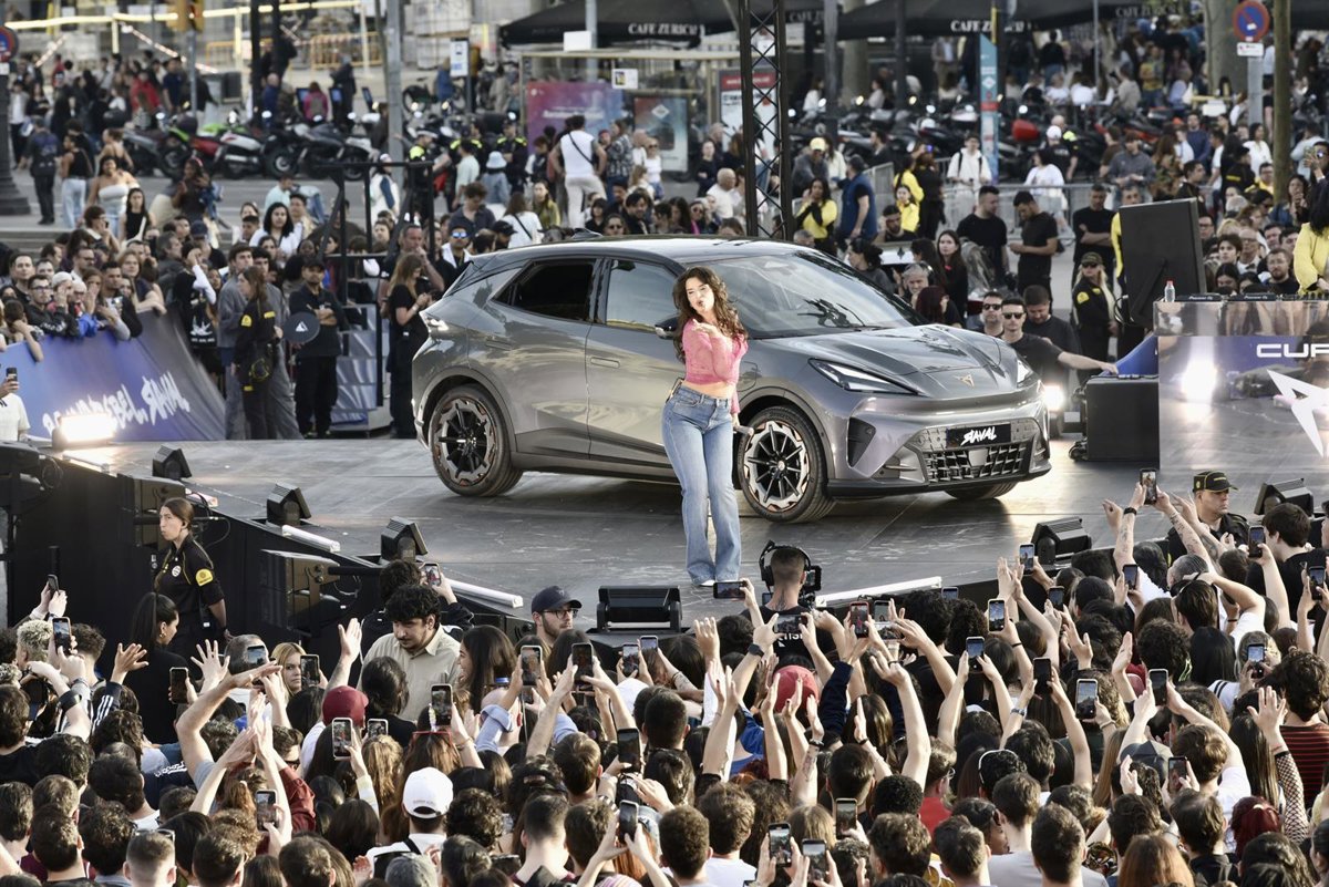 La cantante Nathy Peluso ha ofrecido un concierto gratuito en la plaza Catalunya de Barcelona para celebrar el estreno mundial del Cupra Raval, que ha sido presentado este jueves.