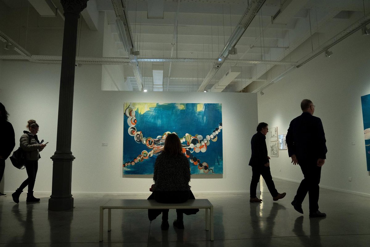 Archivo - Varias personas durante la presentación de una exposición. - David Zorrakino - Europa Press - Archivo
