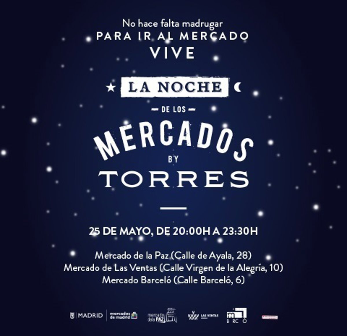 'La Noche de los Mercados' llegará a Madrid el próximo jueves 25 de mayo y en tres mercados emblemáticos de la capital -- Barceló, La Paz y Las Ventas-- tendrá lugar una fiesta gastronómica organizada por Bodegas Torres en colaboración con el Ayuntamiento de Madrid.