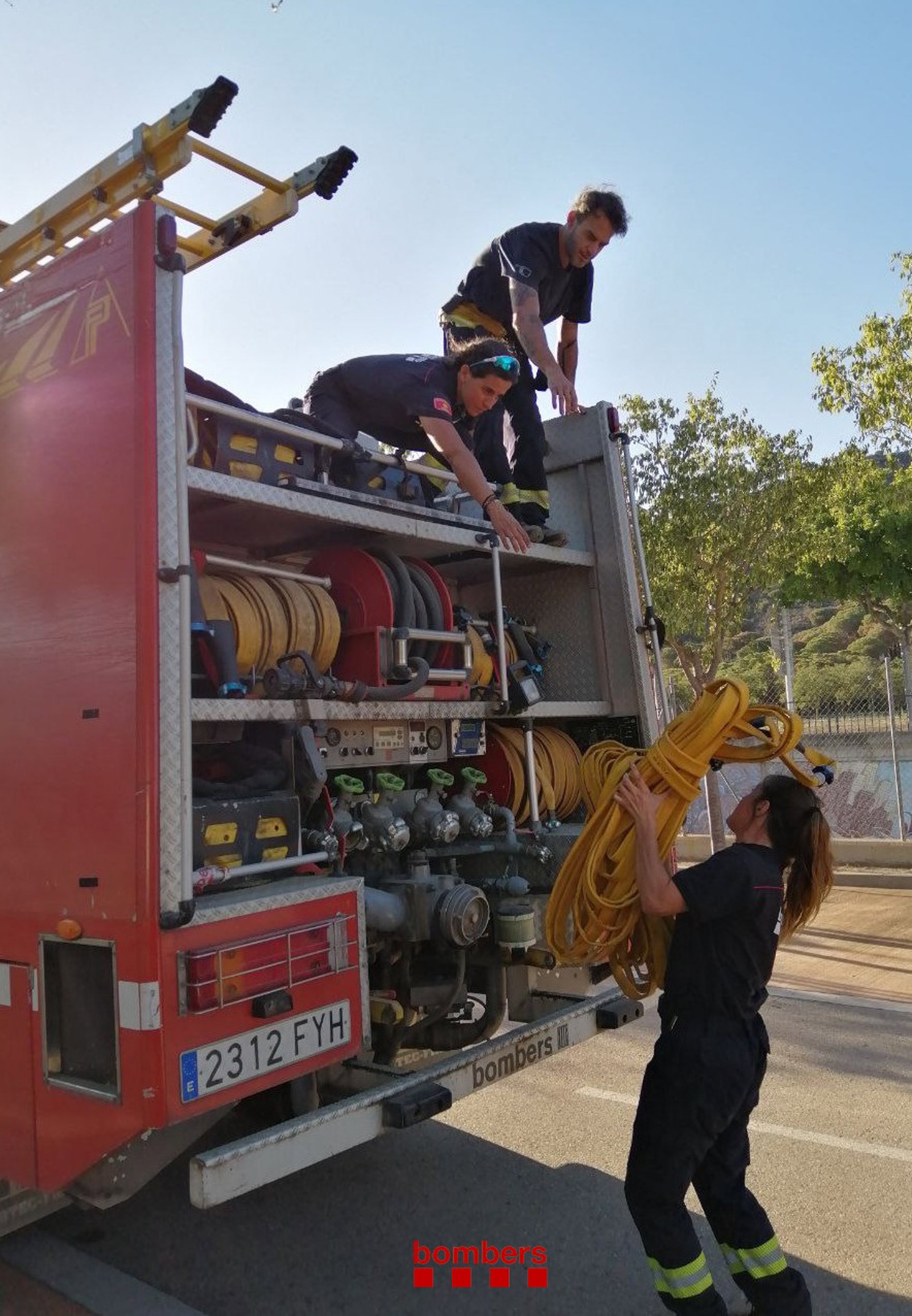 Las dotaciones de Bombers de la Generalitat comienzan a recoger líneas de agua para volver al parque. - BOMBERS DE LA GENERALITAT