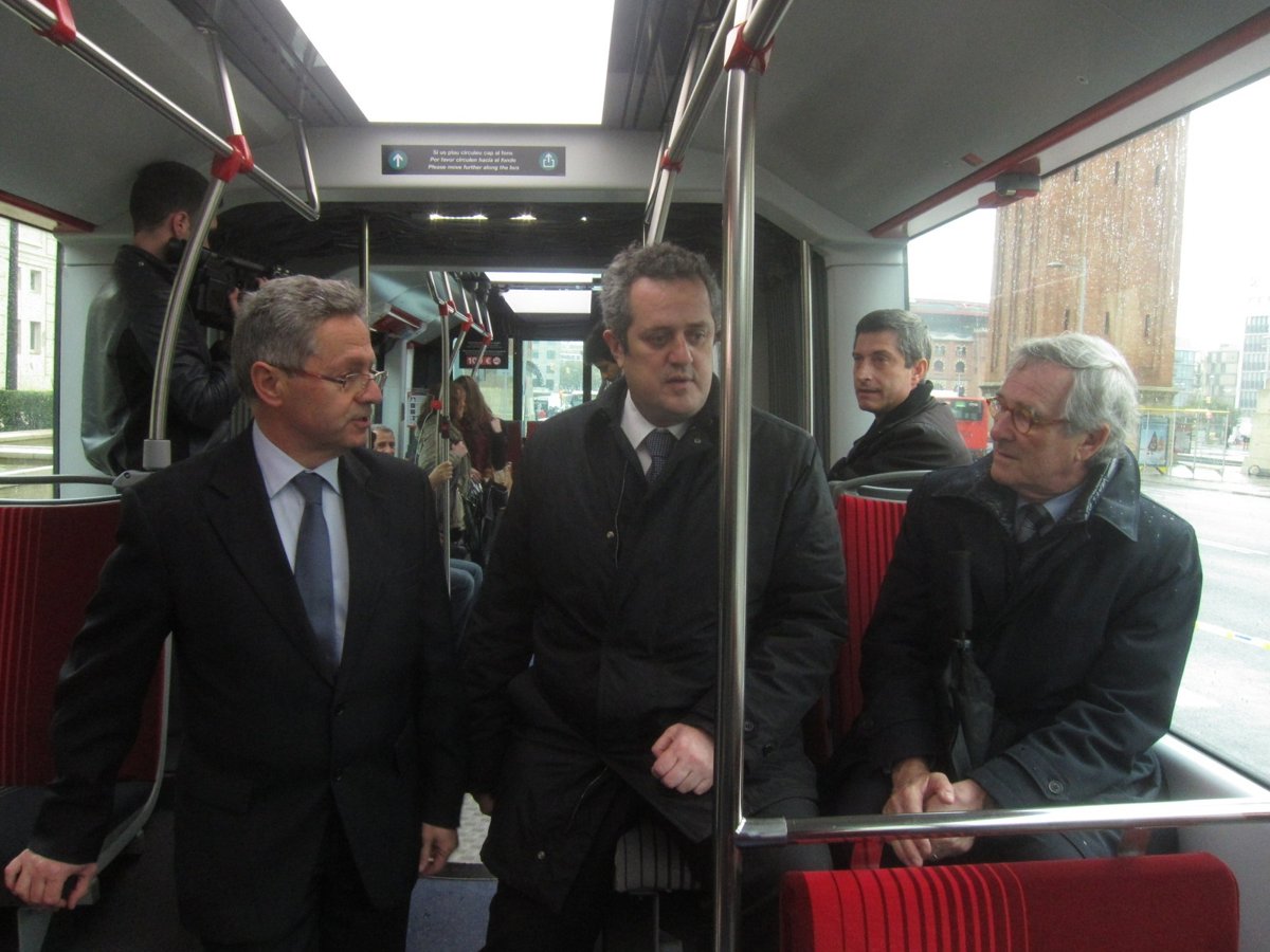 El alcalde ha recordado que el proyecto quiere poner el transporte público de Barcelona "a la altura del siglo XXI", y prueba tangible de ello podrían ser los tres buses biarticulados --uno ya ha llegado--, que desde mayo y tras un periodo de pruebas circularán con pasajeros por Gran Via.