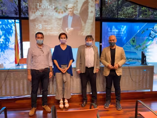 El productor ejecutivo Guillem Carol; la secretaria general de Deporte de la Generalitat, Anna Caula; el jefe de contenidos y programas y adjunto a la dirección de TV3, Sigfrid Gras; y Gaspar Hernndez, director y presentador de 'L'ofici de viure'. - CCMA