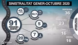 Cifras de siniestralidad en las carreteras catalanas hasta el 31 de octubre de 2020. - TRNSIT