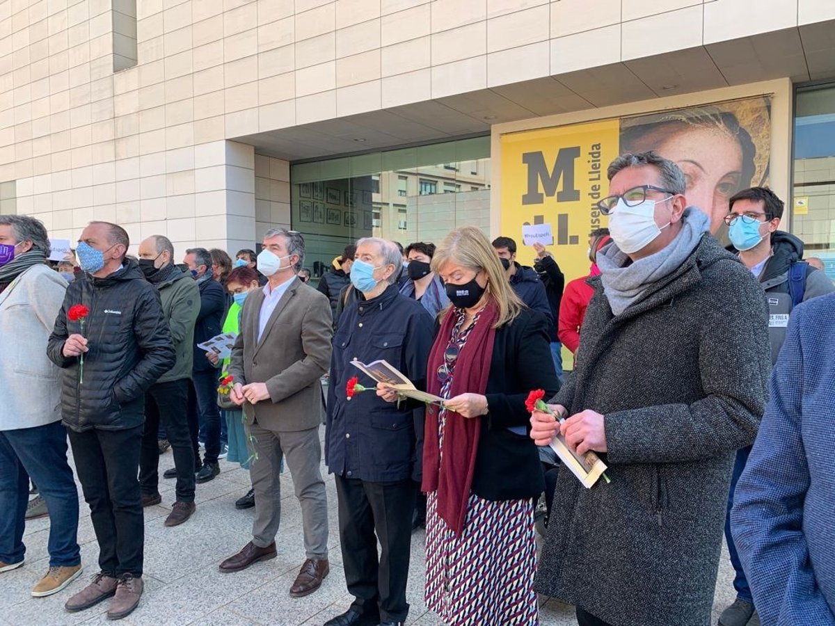 El obispo de Lleida, Salvador Giménez, este miércoles, junto a la consellera en funciones de Cultura, ngels Ponsa y representantes de instituciones de Lleida - EUROPA PRESS