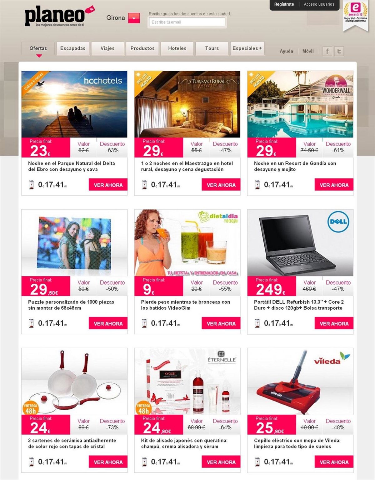 Planeo, fundado en 2011, es un portal de compra de ofertas de ocio, belleza y viajes por Internet, y fue galardonado este año como el mejor Sistema Multiplataforma de España en los premios eAwards.