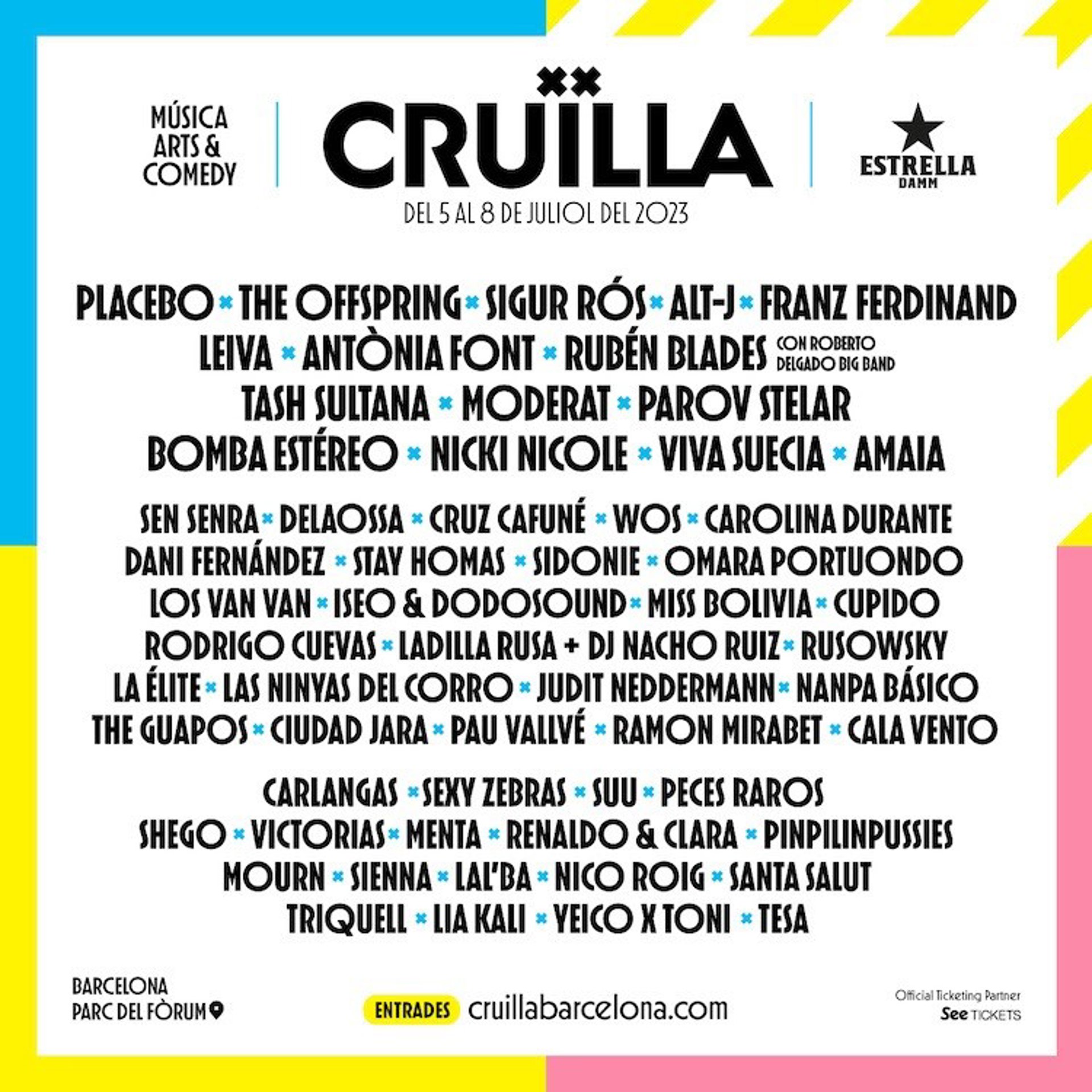 El festival, que tendrá lugar del 5 al 8 de julio en el Parc del Frum, ha anunciado cerca de 60 artistas entre los que destacan The Offspring, Alt-J, Placebo, Sigur Rós, Franz Ferdinand y Rubén Blades.