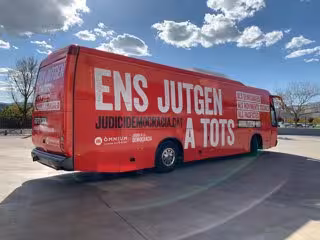 En un comunicado, la entidad ha explicado que el autobús lleva el mensaje 'Nos juzgan a todos: a los demócratas, a los movimientos sociales, a los pacifistas', e insta a los ciudadanos a "movilizarse en defensa de los derechos fundamentales".
