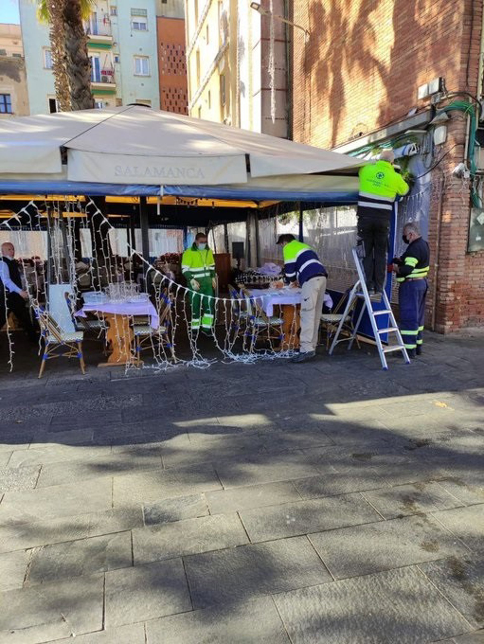 Operarios municipales han retirado este viernes elementos "no permitidos" de la terraza del restaurante Salamanca, situado en el número 34 de la calle Pepe Rubianes y que cuenta con una terraza frente a la playa de la Barceloneta.