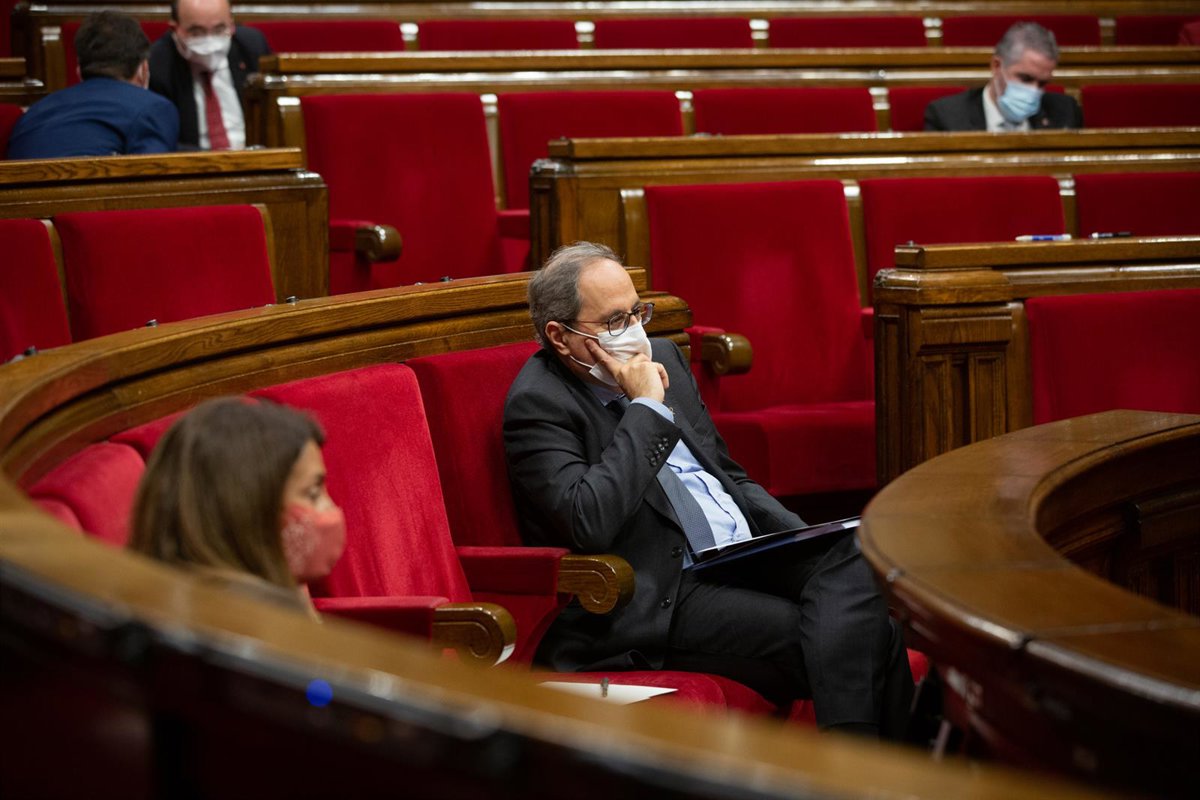 El presidente de la Generalitat, Quim Torra, durante el Debate de Política General (DPG) en el Parlament, en Barcelona, Catalunya (España), a 16 de septiembre de 2020. Durante el plenario, Torra explica la senda que quiere transitar su Ejecutivo. - David Zorrakino - Europa Press