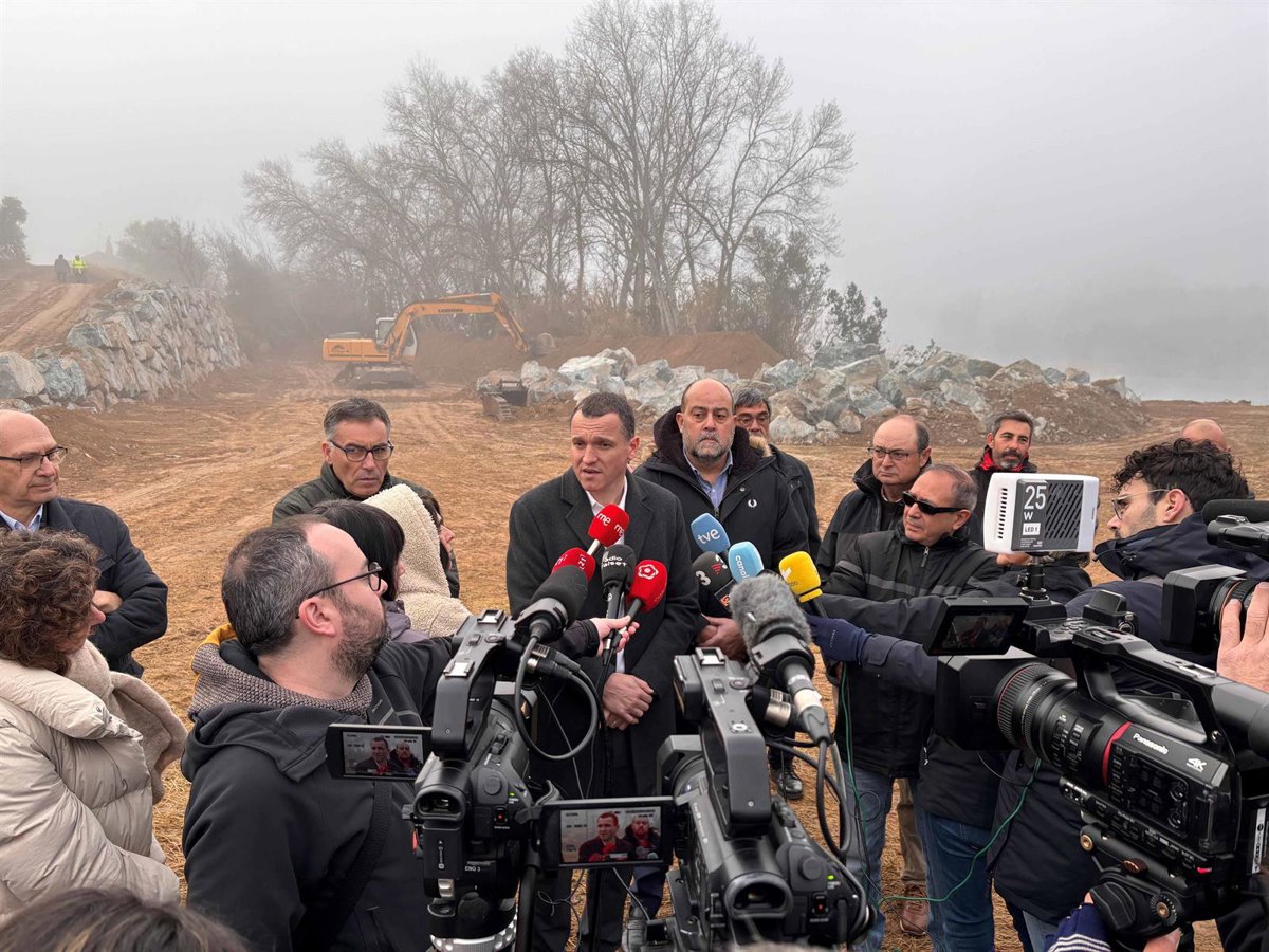 Las obras tienen un coste de 5,7 millones de euros y son ejecutadas por la CHE, y permitirán garantizar el agua para las necesidades de riego de la zona llevando agua del Ebro hasta este embalse.