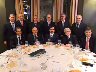 En la primera fila, Pau Relat (Fira de Barcelona), John Hoffman (GSMA), Antonio Delgado (Círculo de Economía), Josep Sánchez Llibre (Foment del Treball) y Jordi Juan (La Vanguardia), en Barcelona el 23 de enero de 2020, antes de una conferencia de Hoffm - EUROPA PRESS
