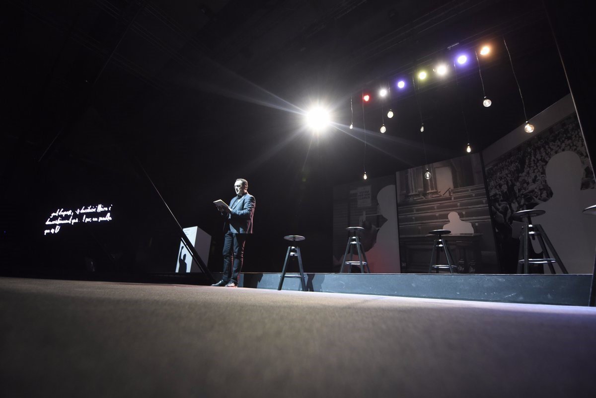 El acto ha empezado con un holograma de Junqueras en el escenario y que, a los pocos segundos, se ha difuminado para que varias personas, incluido su hermano Roger Junqueras, leyeran la conferencia en nombre del líder de ERC.