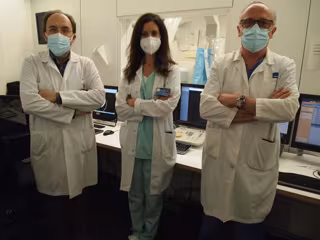 De izquierda a derecha, los autores e investigadores del Hospital del Mar de Barcelona y del IMIM, doctor Jaume Roquer, doctora Gloria Villalba y doctor Leopoldo Guimaraens. - HOSPITAL DEL MAR