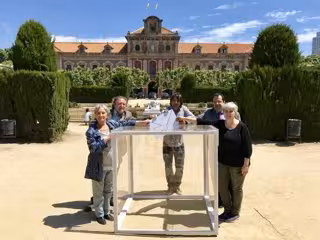 La rueda de prensa se ha celebrado ante una gran urna de metacrilato frente al Parlament, en el mismo momento en el que el pleno aprobaba buscar el "aval" de la Comisión de Venecia para celebrar el referéndum y pocos días después de que la fiscalía instara a querellarse contra la consellera de Gobernación, Meritxell Borràs, por abrir un concurso para homologar a empresas que fabrican urnas.