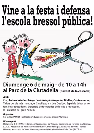 El colectivo de Asociaciones de Madres y Padres de Alumnos (Ampas) y el de educadoras de guarderías públicas de Barcelona han organizado este domingo una fiesta en el parque de la Ciutadella para defender el modelo de educación pública de 0 a 3 años.
