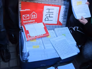 La Plataforma de Afectados por la Hipoteca ha recogido 200.000 firmas en Catalunya de respaldo a la Iniciativa Legislativa Popular (ILP) para implantar la dación de la vivienda en pago, establecer un proceso de moratoria de desahucios e implantar alquileres sociales para que los afectados puedan permanecer en sus hogares.