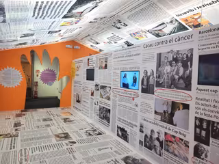 La exposición, comisariada por Hortènsia Galí, es un relato en forma de crónica periodística que narra los 40 años de trayectoria de la entidad a través de texto, espacios audiovisuales y material gráfico.