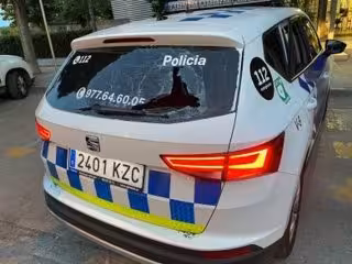 Vehículo de la Policía Local de Torredembarra con el cristal roto - AYUNTAMIENTO DE TORREDEMBARRA