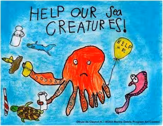 Dibujo infantil sobre la problemática de a basura marina, difundida por la Generalitat de Catalunya a modo de ejemplo para el concurso. - GENERALITAT DE CATALUNYA
