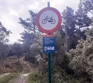 Una señal prohíbe la circulación de biciletas en el Parc Natural del Montseny. - DIPUTACIÓN DE BARCELONA