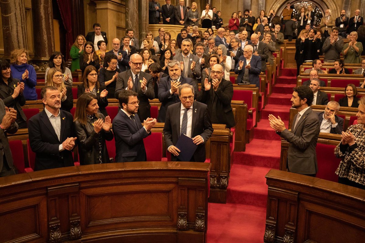El president de la Generalitat, Quim Torra, es aplaudido a su llegada a un pleno extraordinario convocado tras la decisión de la Junta Electoral Central (JEC) de inhabilitarle - Pau Venteo - Europa Press
