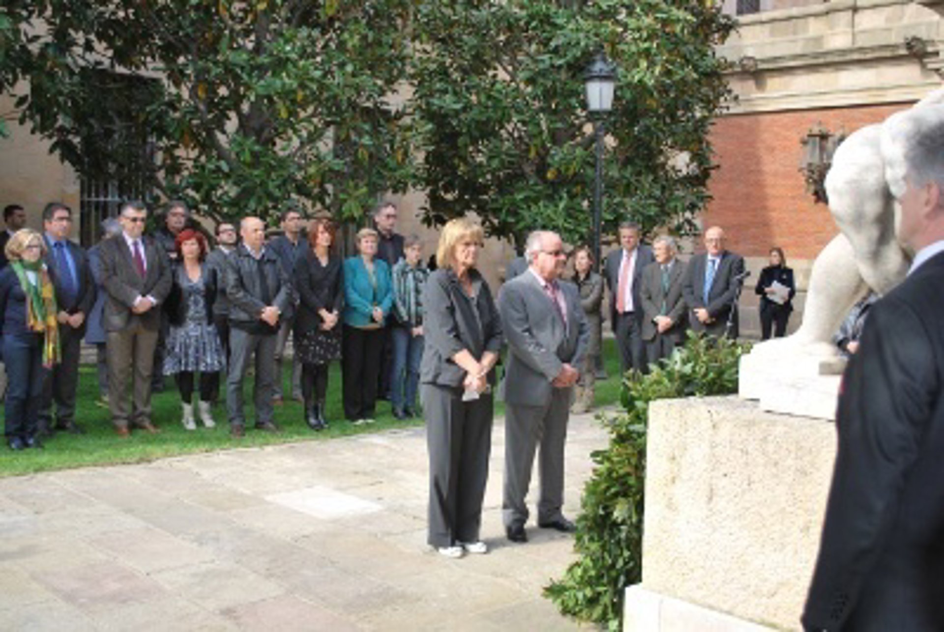 El Parlament ha homenajeado este lunes a los republicanos perseguidos por el franquismo con una ofrenda floral ante la escultura 'La piedad', en el patio de la biblioteca de la Generalitat, donde se ha expuesto la apuesta de la cámara catalana "por la concordia, el diálogo y la construcción comuna del país".