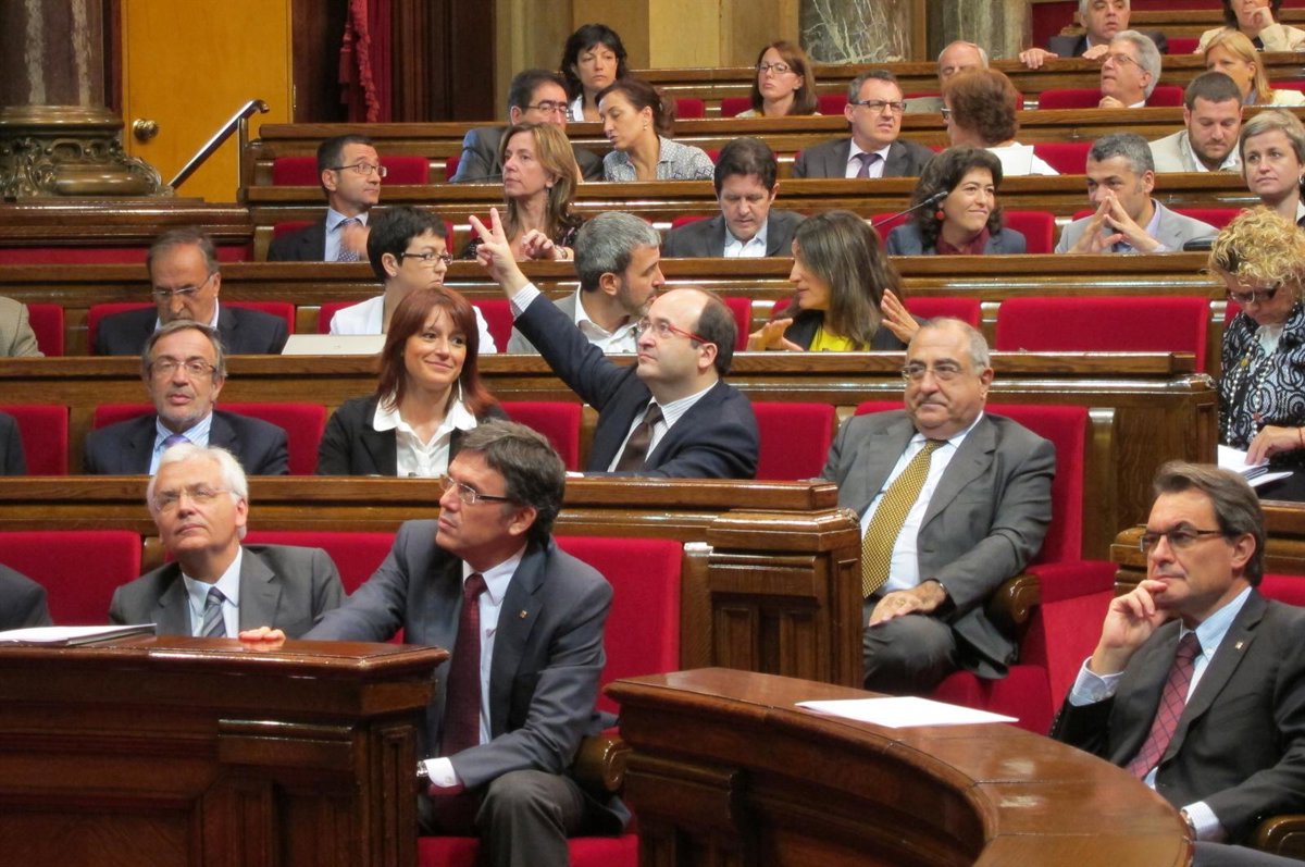 El Parlament de Catalunya ha rechazado este jueves con los votos de CiU, PSC, ICV-EUiA, ERC y SI una moción de C's para "derogar las cuotas lingüísticas y el régimen sancionador" que establece la ley del cine catalán.