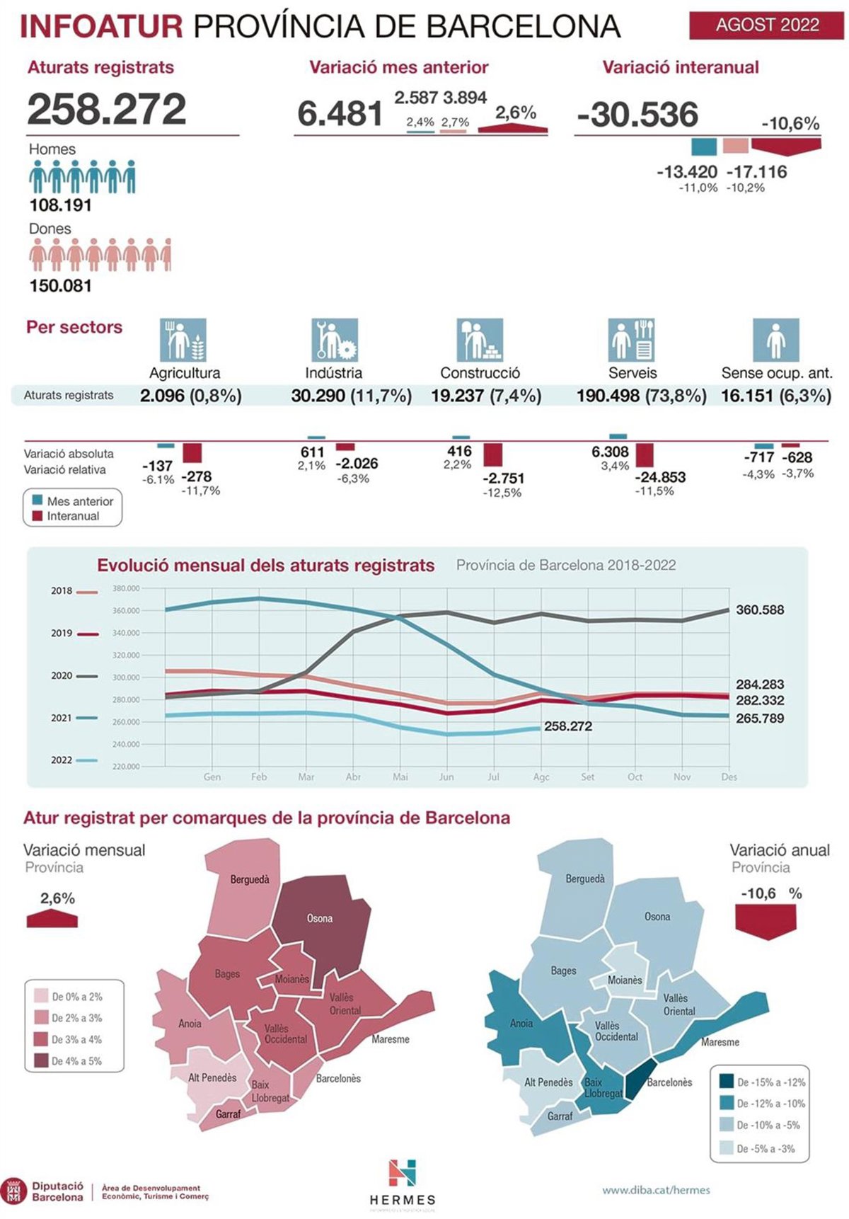 Infografía de los datos del paro de la provincia de Barcelona en agosto - DIPUTACIÓ DE BARCELONA