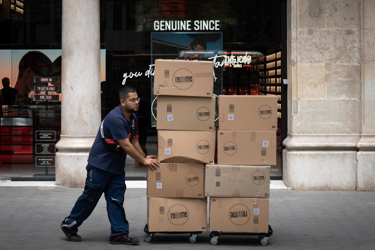 Archivo - Un repartidor con una carretilla - David Zorrakino - Europa Press - Archivo