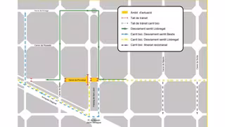 Los vehículos que circulen por la calle Provença no podrán cruzar el paseo Sant Joan de manera horizontal, sino que tendrán que subir por un lateral y girar por la calle Còrsega y la calle Bailén para volverse a incorporar al paseo inicial.