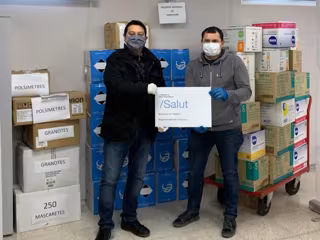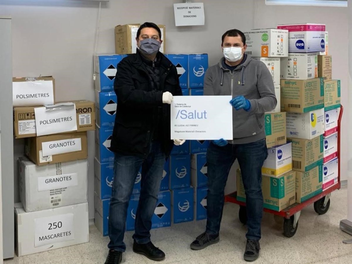Ferran Perdrix, a la izquierda, en la entrega del material sanitario al ICS - FECOLL