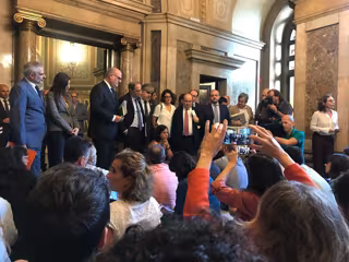 También se han detenido a escuchar las reivindicaciones de los periodistas el vicepresidente del Govern, Pere Aragons; la líder de Cs en el Parlament, Lorena Roldán; el del PSC, Miquel Iceta; el del PP, Alejandro Fernández; la portavoz de los comuns, Susana Segovia, y el diputado de la CUP Vidal Aragonés, entre otros.