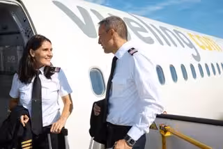 Pilots de Vueling con los galones de color rosa. - VUELING