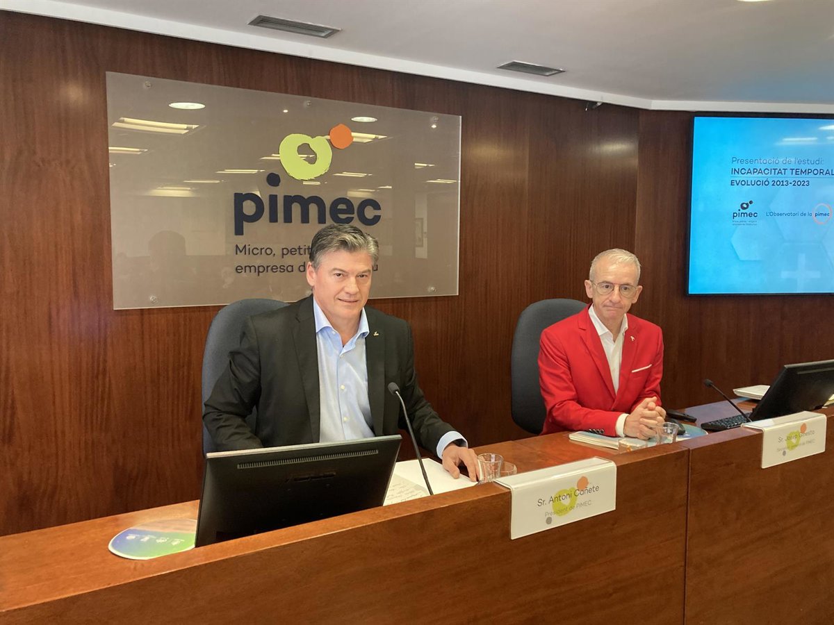 El presidente de Pimec, Antoni Cañete, y el secretario general, Josep Ginesta. - EUROPA PRESS